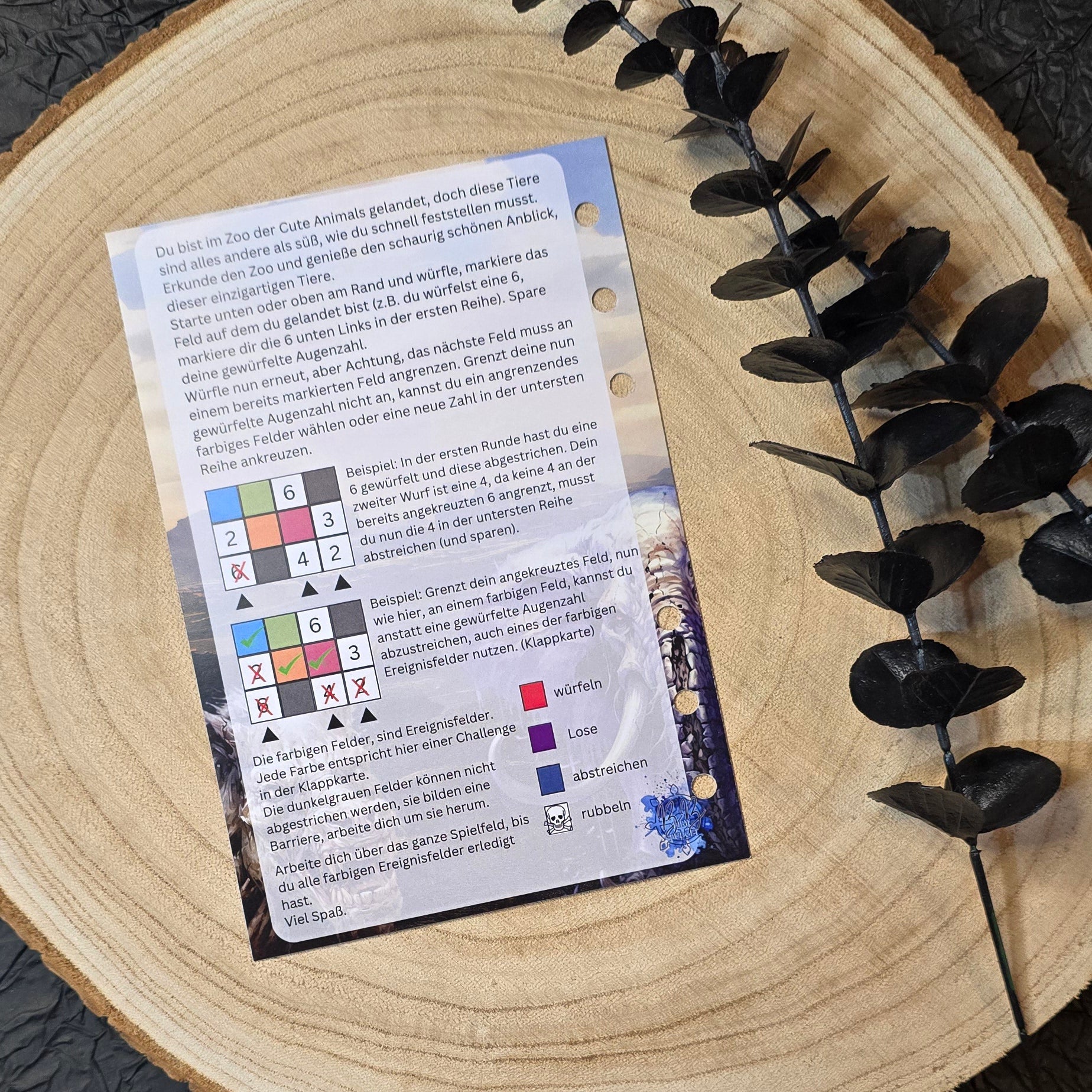 • Spielfeld zum Einheften mit Anleitung auf der Rückseite