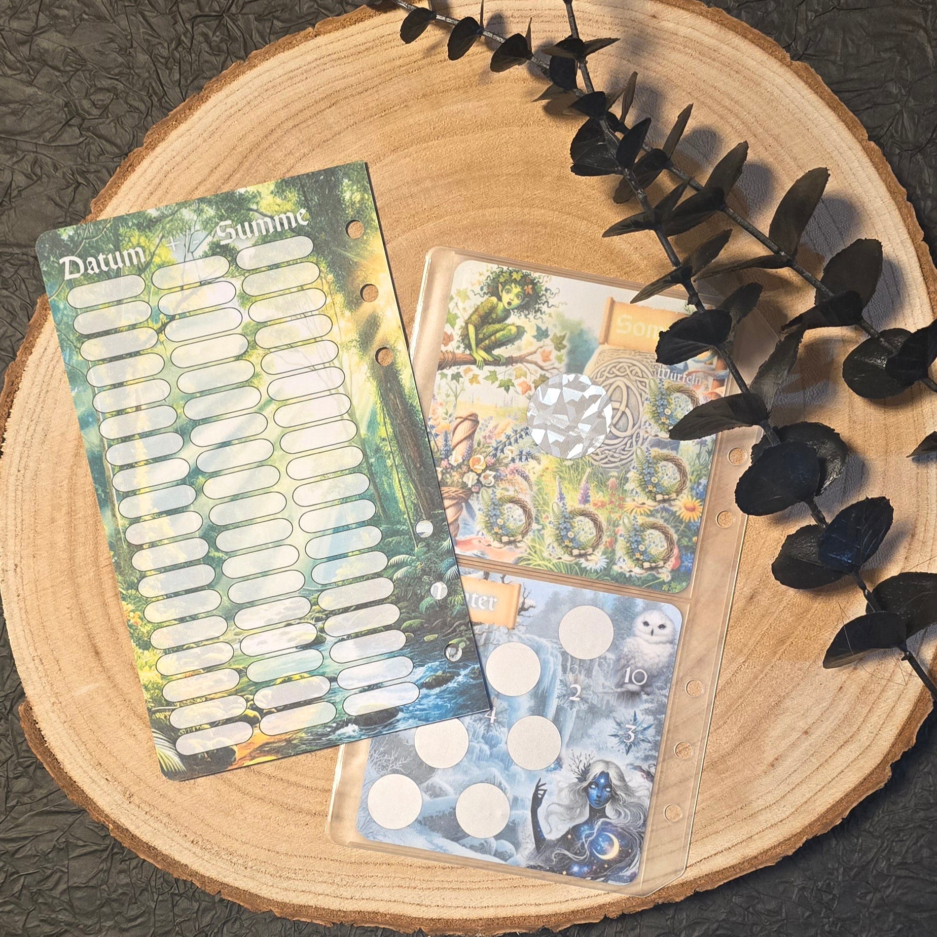 - Deckblatt mit Tracker auf der Rückseite (laminiert und gelocht passend für deinen A6-Binder)