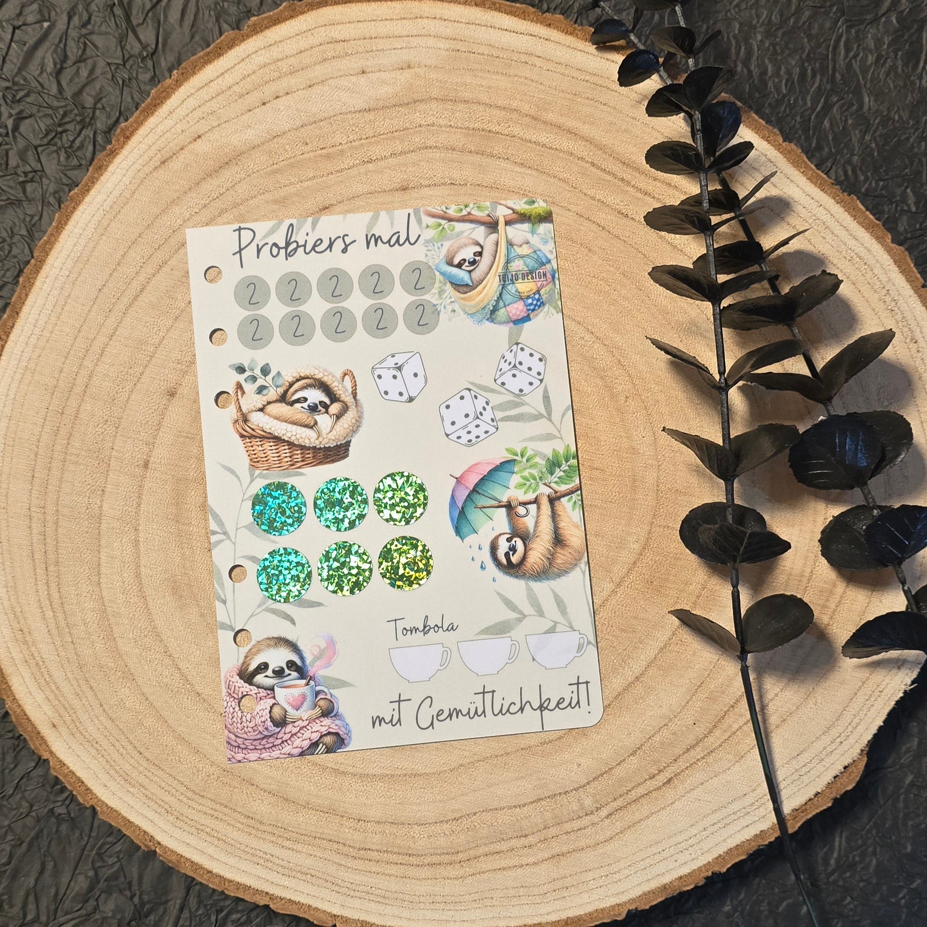 Die Challenge ist laminiert und gelocht, passend für deinen A6-Binder.