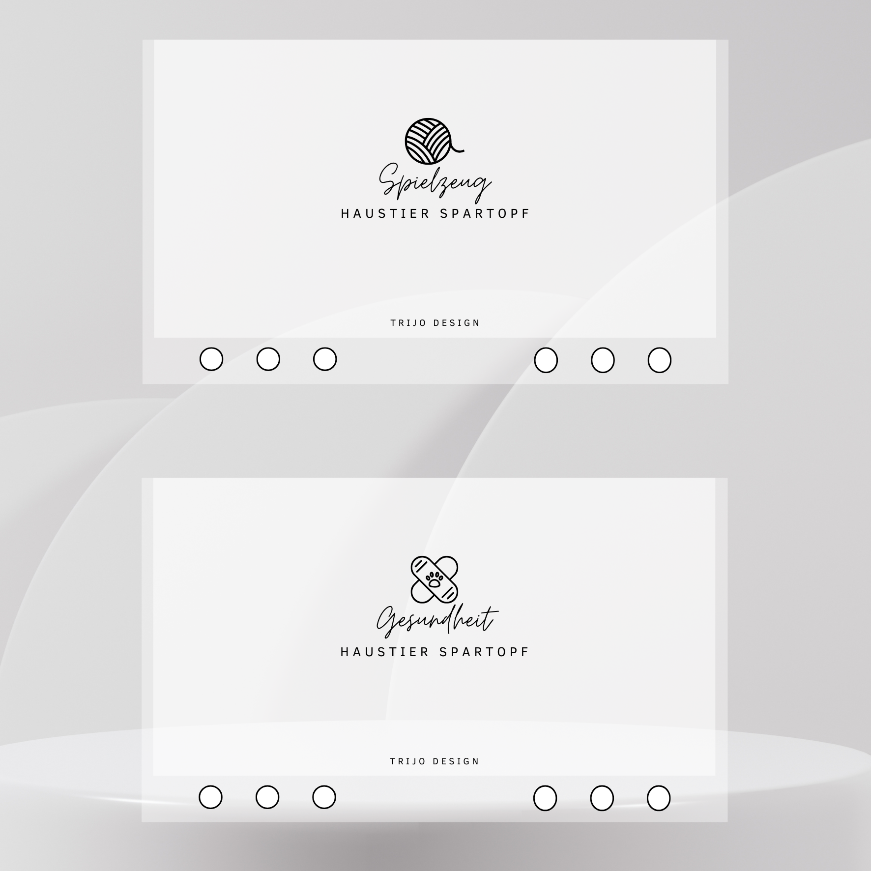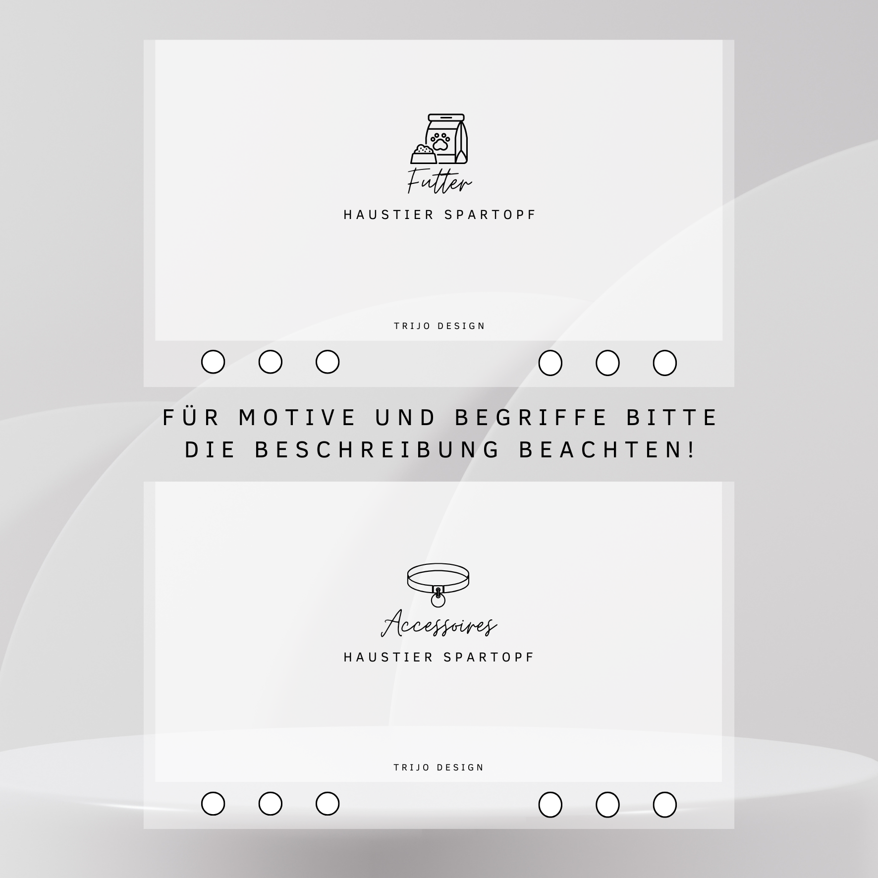 2 Wähle ein Beispiel-Motiv für einzelne Umschläge (Futter, Spielzeug, etc...) und gebe bei Bedarf deinen eigenen Begriff im Warenkorb ein