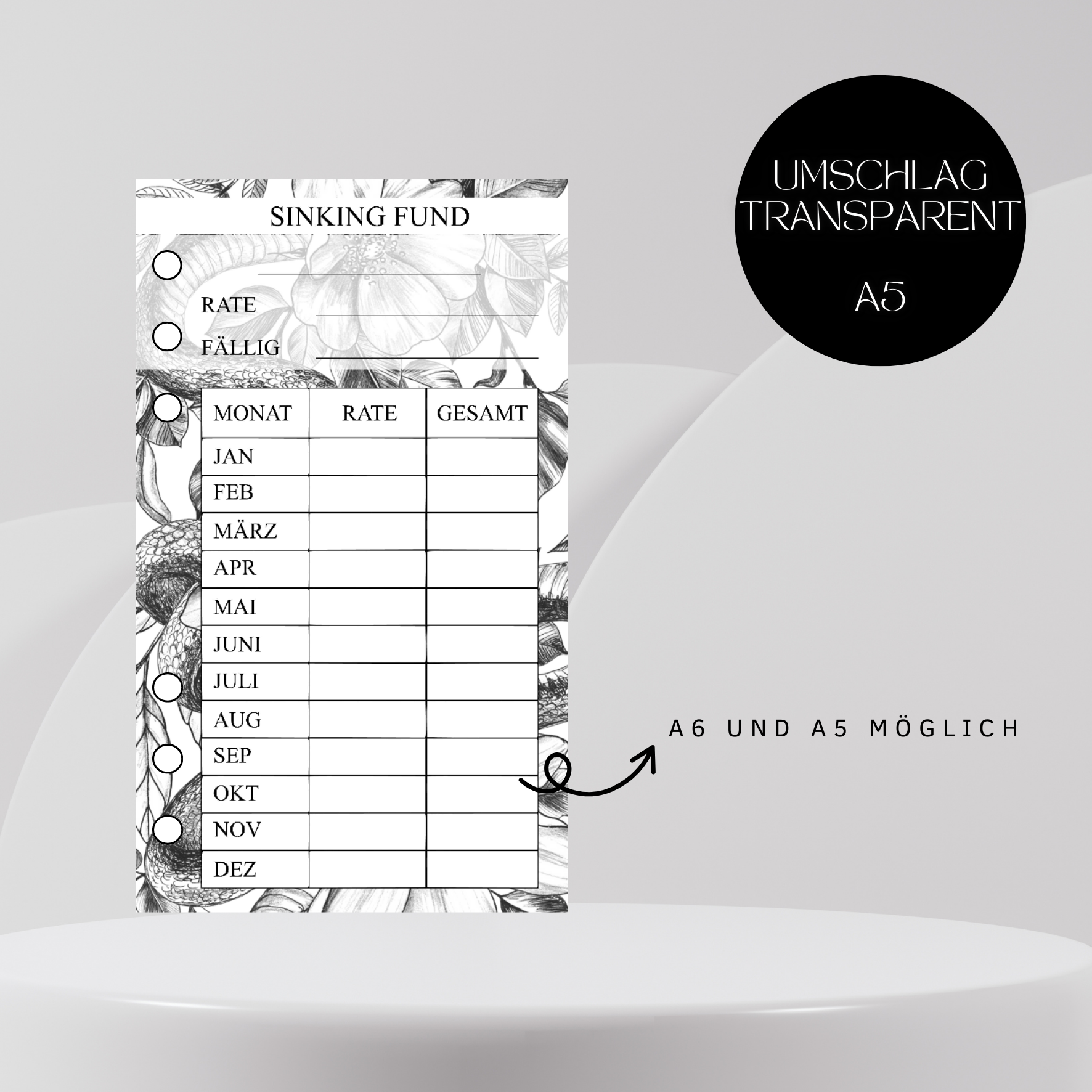 Sinkingfund-Umschläge transparent A6 aus unserer "Flower Snake"-Kollektion