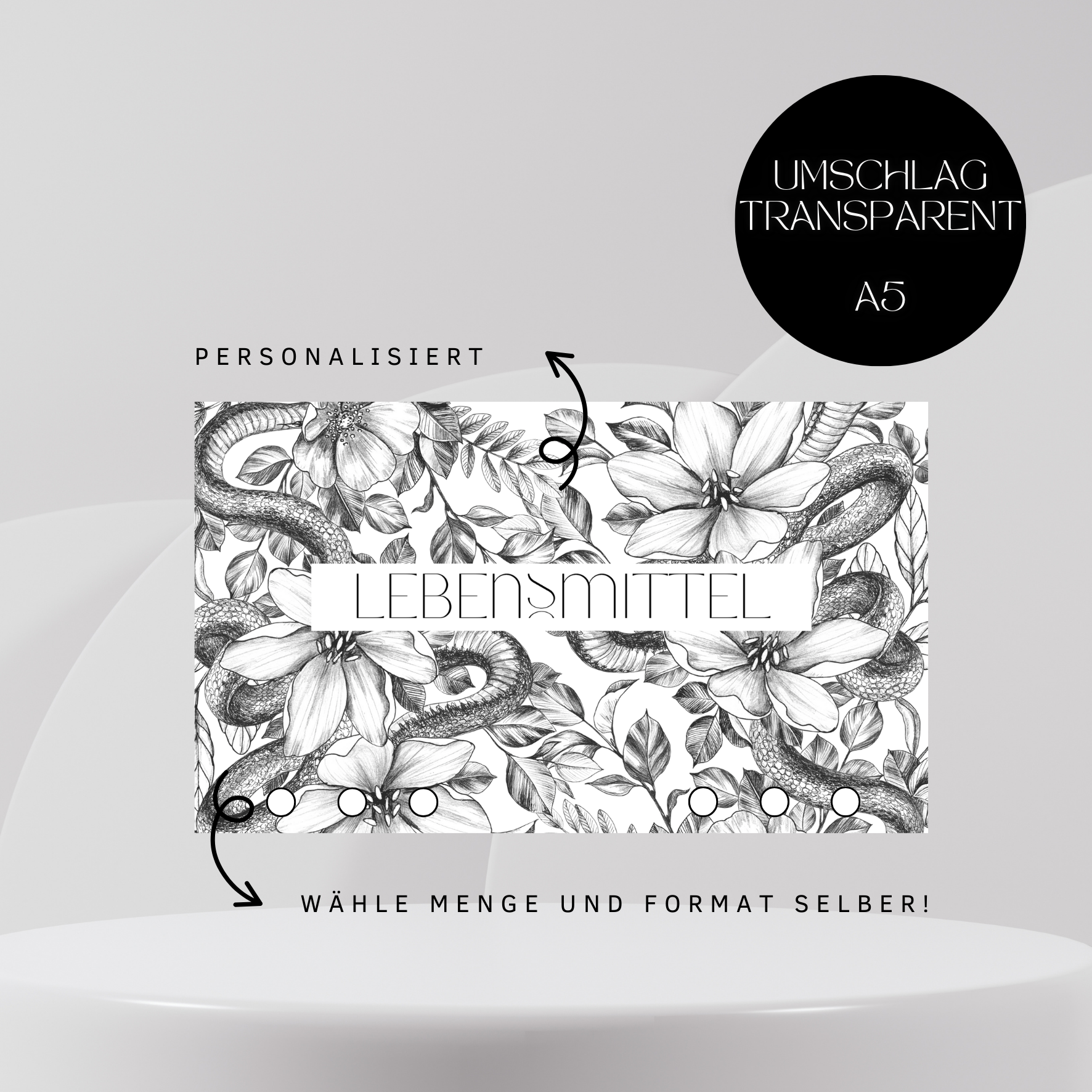 Dashboard-Umschläge transparent A6 aus unserer "Flower Snake"-Kollektion