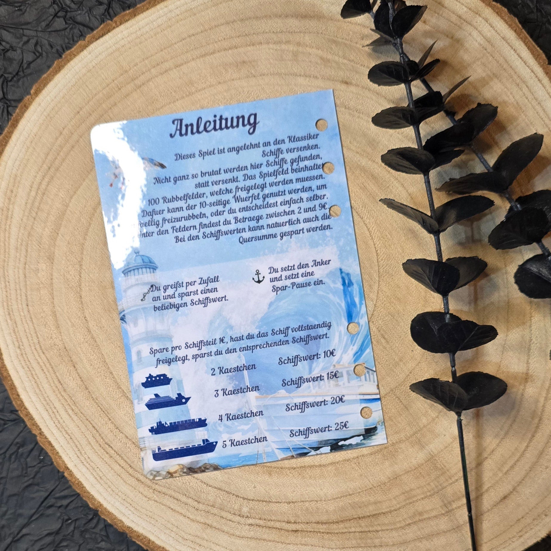 Folge den Anweisungen auf der Rückseite für die verschiedenen Symbole und auch für die Schiffe, die gefunden werden können.