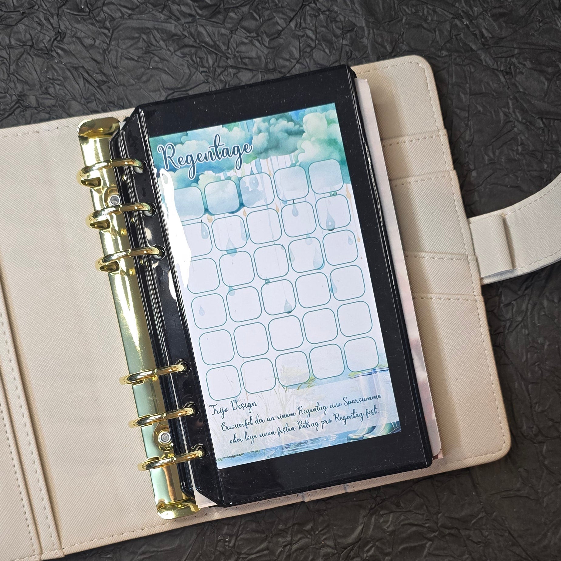 Spare an jedem Regentag und spare entweder einen festgelegten Betrag oder erwürfel, wie viel gespart werden soll.