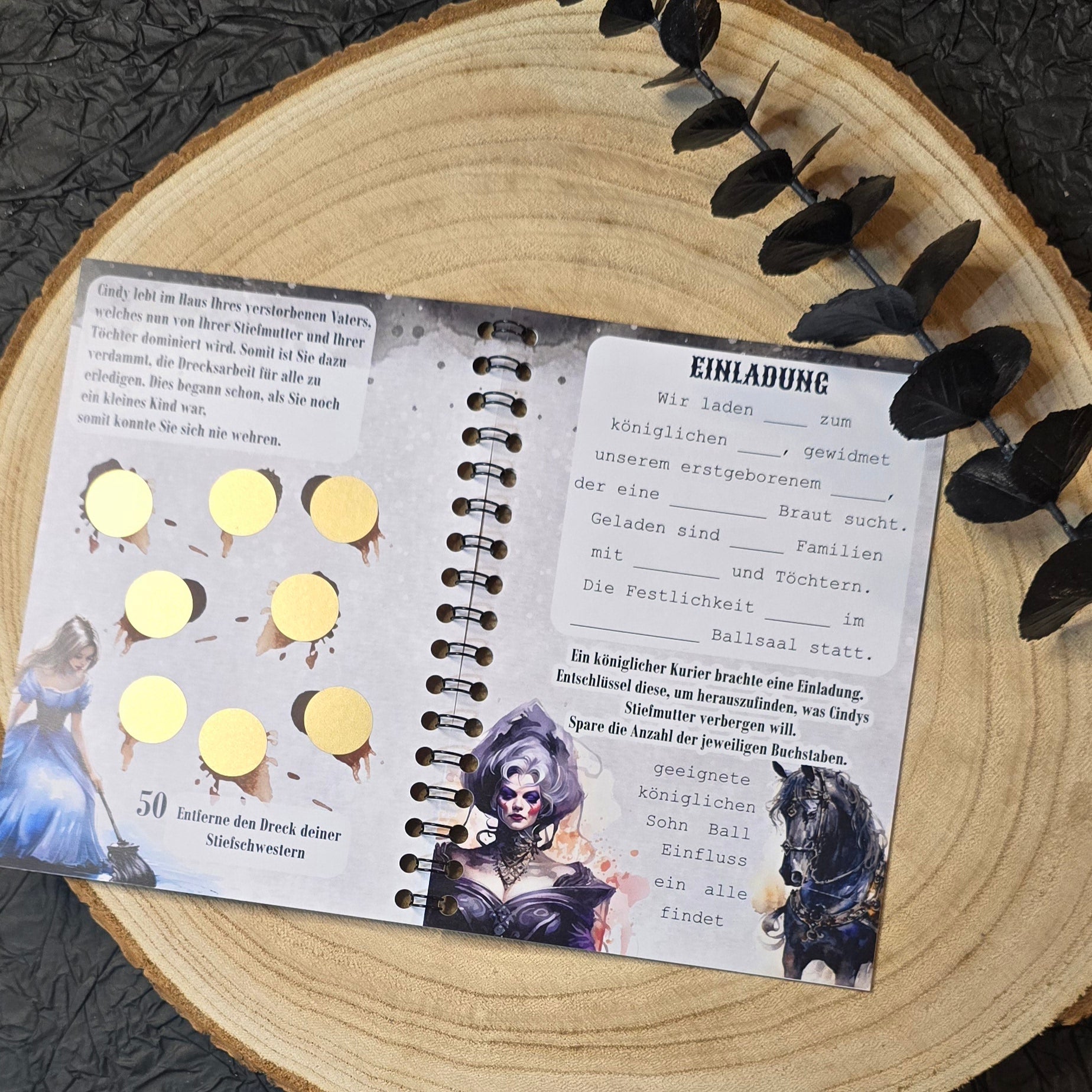 Folge der geschichte Seite für Seite, indem du die entsprechenden Aufgaben löst und sparst.