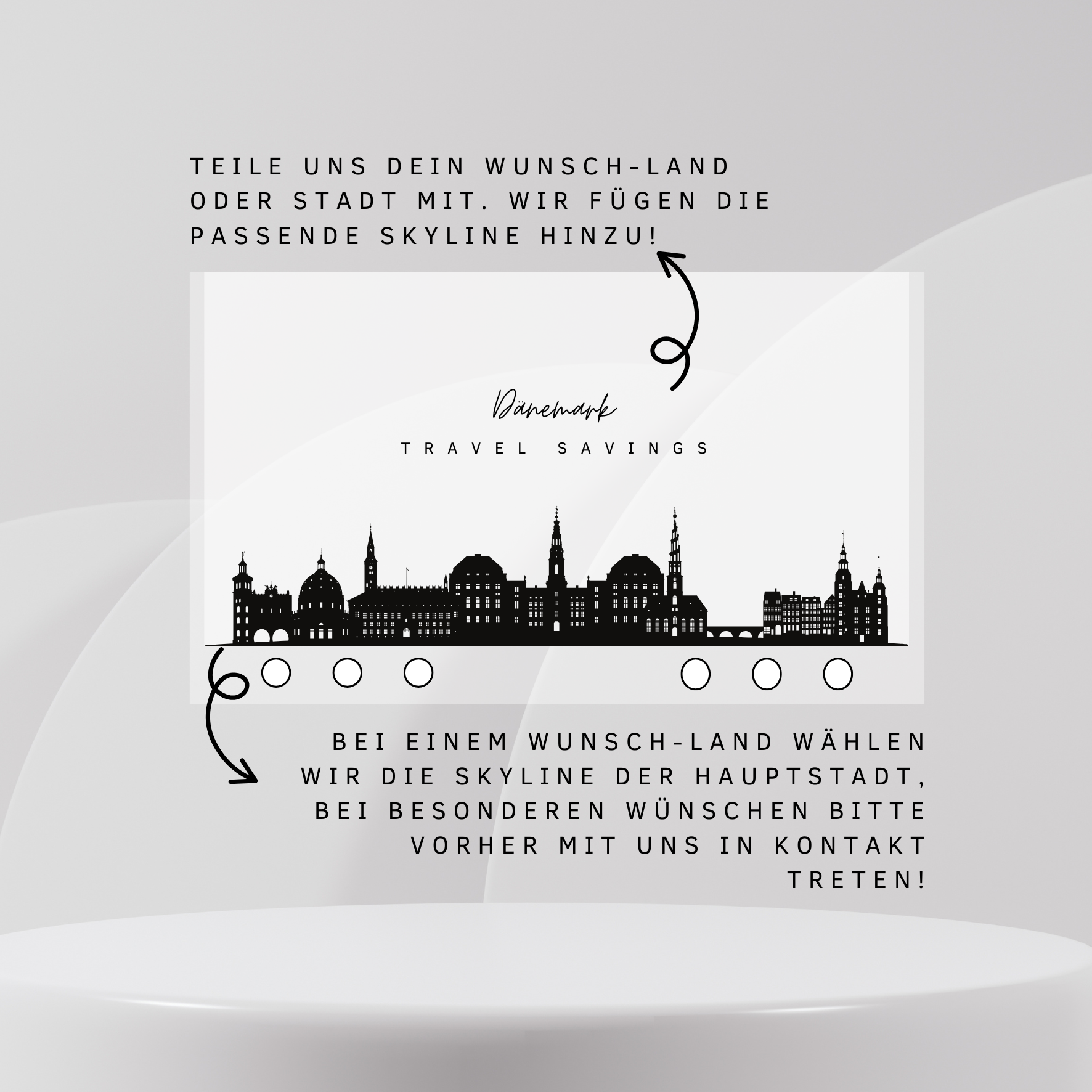 7 Der Umschlag mit der Skyline kann einzeln als "Urlaubsziel"-Umschlag ausgewählt werden.